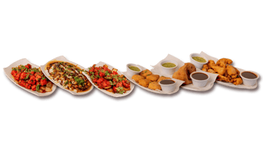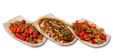 A tangy, sweet blend of chickpeas, potatoes, papadies, and a touch of yogurt, served with Black Indian Salt