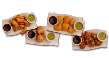 Mildly spiced boneless chicken fritters flavored with fresh onions, garlic, and ginger