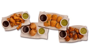 Fresh vegetables dipped in gram flour batter and deep-fried