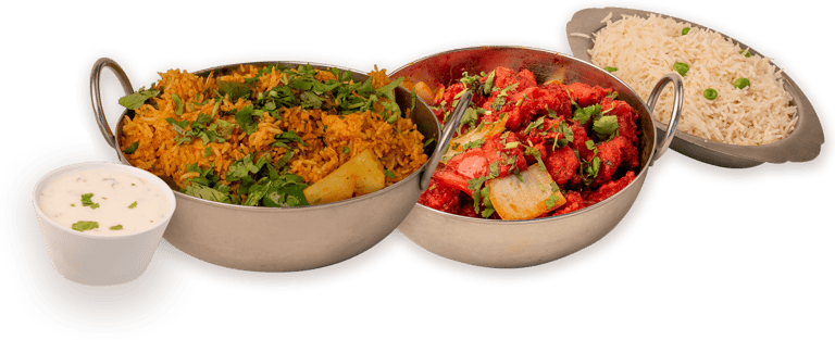 Aromatic blend of spices, basmati rice, and tender meat/vegetables
